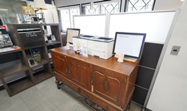 アイルモータースクールは、すべての人に上質なモノやデザインに触れてほしいという想いから、可能な限りアンティーク家具を取り入れています。