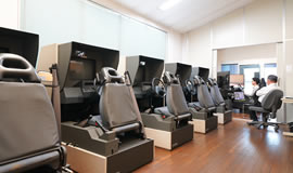 アイルモータースクールの校舎・校内は、快適に教習を受けられるよう設計されています。広々とした教室や最新設備を備えたシミュレーターを完備し、リラックスできる待合スペースや学習しやすい環境を整えています。また、アンティーク家具を取り入れた上質な空間デザインや、洗練されたモノトーンのイメージカラーにより、落ち着いた雰囲気の中で教習を受けることができます。快適な環境の中で、安全で楽しい教習を提供します。