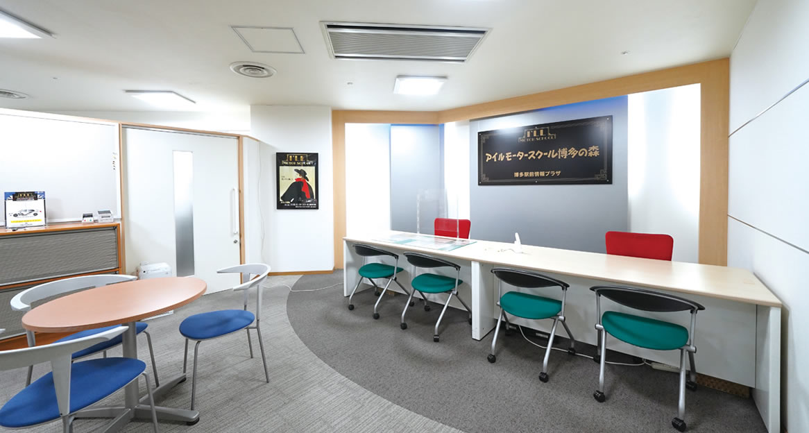 JR博多駅から徒歩3分、福岡センタービル地下1階にある「博多駅前入校プラザ」は、入校申込や各種ご相談を承る便利な窓口です。免許を取得したいけれど学校選びに迷っている方や、アイルモータースクールに興味はあるけれど不安や疑問をお持ちの方も、ぜひ一度お越しください。経験豊富なスタッフが、一人ひとりの状況に合わせて丁寧にご説明し、分かりやすくサポートいたします。初めての方でも安心して相談できる場所として、多くの方にご利用いただいていますので、どうぞお気軽にお立ち寄りください。