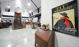 アイルモータースクールは、すべての人に上質なモノやデザインに触れてほしいという想いから、可能な限りアンティーク家具を取り入れています。