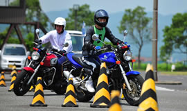 アイルモータースクール下関ではきれいな教習車、広々としたコースで快適教習。また二輪専用コースを備えています。専用コースのため、基本走行では普通車等を気にせず、課題等を何度も集中して練習することができます。また、指導員の目が届きやすく、安全に、かつ的確なアドバイスを受けることができます。応用走行では普通車コースも使用し、実際の交通により近い状況での教習も行っています。